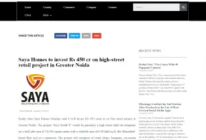 Hospitality NewsSaya Group's Premium High-Street Mall Saya Piazza at Jaypee Wishtown Applies for OC; Ministry of Beer and LOOKS Salon Onboard.